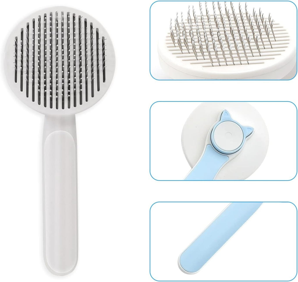 Este es un cepillo multifuncional para mascotas que combina la depilación y el cuidado de la mascota. El peine extraíble en la parte inferior sirve para eliminar los nudos de pelo. Los peines en forma de disco se utilizan para tratar el pelo de los animales como un masaje o eliminar la suciedad.